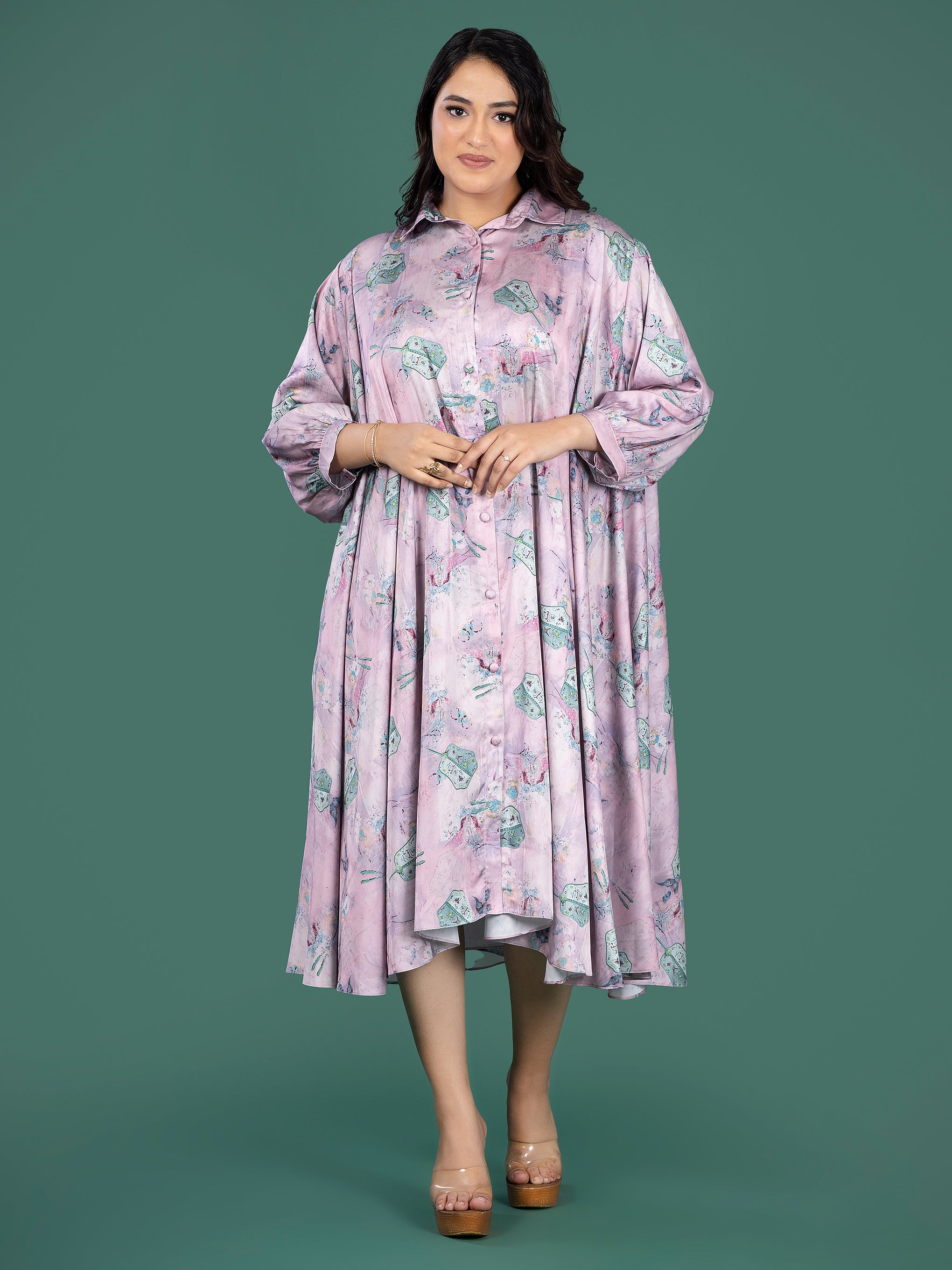 A flowy statement piece crafted in premium printed satin, designed to bring comfort and charm together. With its soft sheen, playful prints, and effortless silhouette, this dress is perfect for plus-size women who love relaxed elegance without compromising on style.